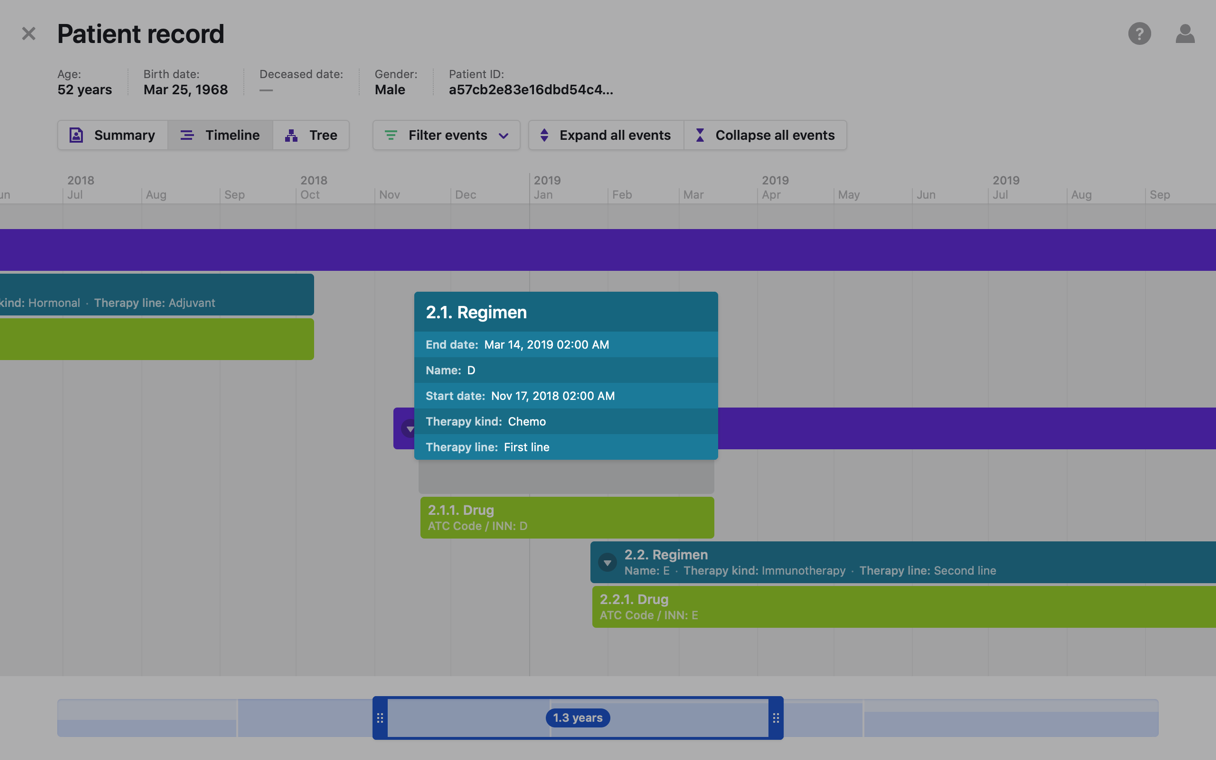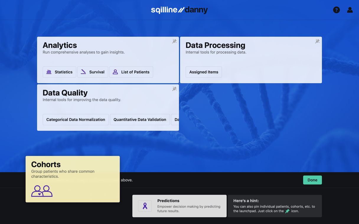 The project: Danny is a platform focused on the collection, processing, interpretation, and visualization of real-world health data. It integrates with existing hospital information systems to make sense of the data already stored there. It is now being used for observing clinical patterns, evaluating treatment outcomes, facilitating patient recruitment process for clinical studies, and sourcing medical data for scientific publications.