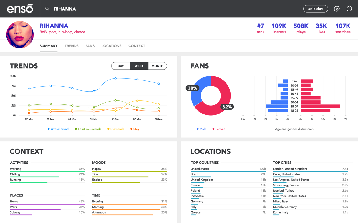 The project: In 2015 I was helping multiple startups in Bulgaria to design their products, both conceptually and visually. One of them was Enso – an intelligent and personal music curation service playing the right songs for the right moment. My main responsibility was designing an elegant, simple, and engaging mobile application that recommends songs based on user's music preferences, current mood, location, and activity.